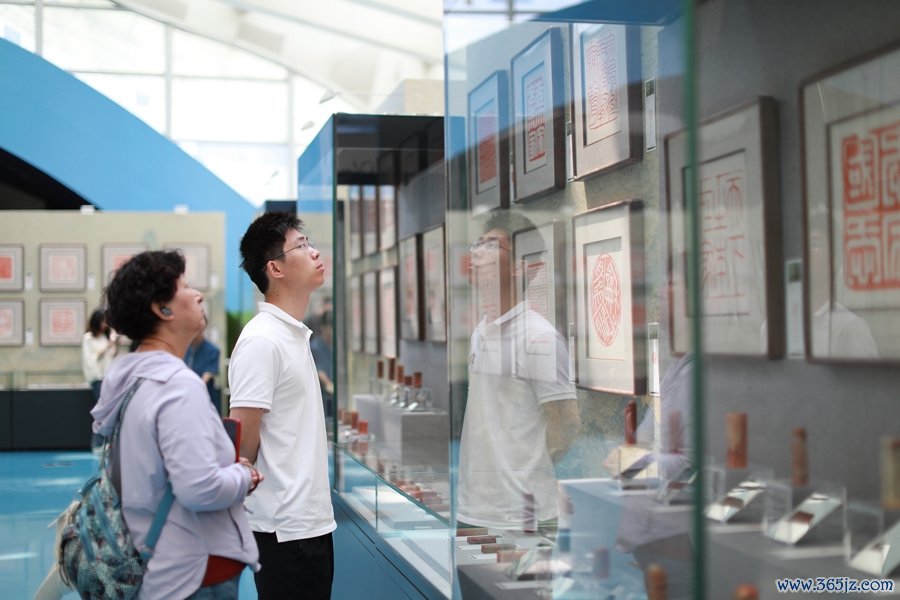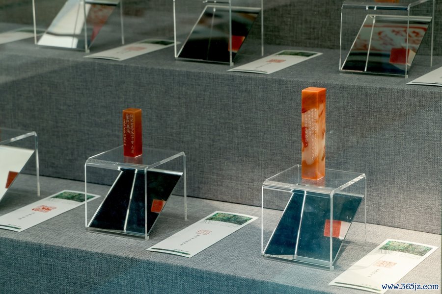 在中国妇女儿童博物馆三楼展厅平台,陈列着华东师范大学美术学院书法篆刻方向师生共同创作的110方篆刻原石,由原石钤拓而成的20米手卷尤为引人注目,展厅中还悬挂着46方高清放大的印蜕。
